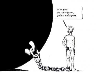 J’aime beaucoup ce dessin très évocateur:il est tellement d’êtres enchaînés qui se refusent à la liberté en prétextant qu’ils sont très bien ainsi…évidemment rester dans l’inertie demande moins d’efforts mais procure moins de joie