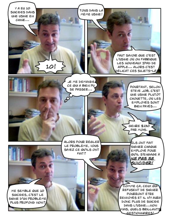 Et voilà que je vais encore une fois me sentir coupable si j’achète ce Ipad fabriqué à la sueur du front de milliers de gens qui se font exploiter…