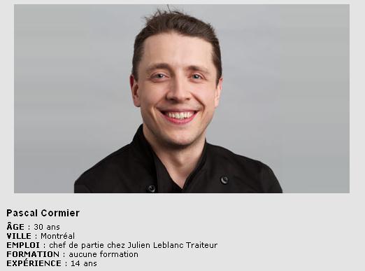 Je trouve particulièrement intéressant l’attitude des participants, leur personnalité, leur façon d’être. La semaine dernière, Hugo Giroux St-Jacques a été éliminé. Celui-ci était toujours souriant et enjoué, une attitude très positive, même lorsque l’on critiquait ses mets. Un autre candidat, Pascal Cormier était en danger cette semaine et croyait bien être éliminé également. C’est que Pascal, de toutes évidences, souffre du syndrôme de l’imposteur. Même s’il travaille comme Chef depuis 14 ans, il n’a reçu aucune formation en cuisine. C’est un passionné, qui a d’abord appris à cuisiner à la maison et qui a ensuite appris sur le tas, en exerçant différents boulots dans le domaine de la restauration. Il est très bon et d’ailleurs, le fait qu’il soit encore parmi les 5 finalistes en témoigne.