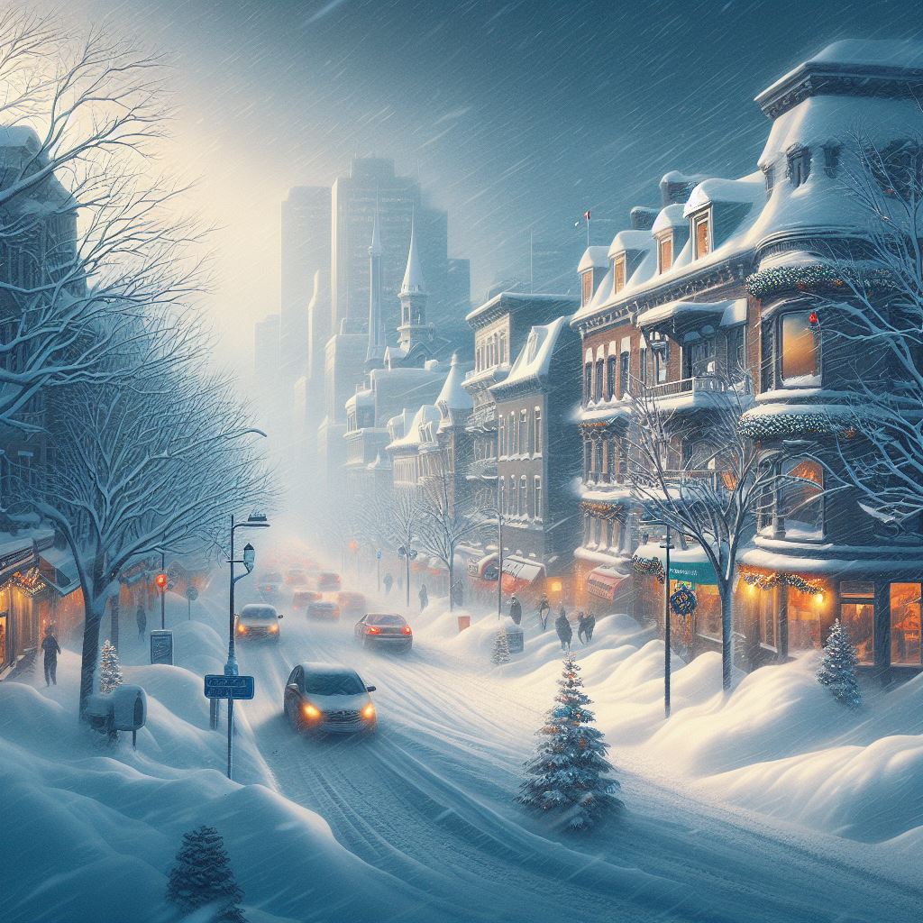 J’habitais heureusement à seulement quelques coins de rue du bureau. Le froid était mordant, le vent soufflait fort et j’y voyais à peine, marchant tête baissée pour ne pas recevoir la neige en pleine gueule. Je sus rapidement que mon pantalon serait trempé à l’arrivée, puisque la neige dépassait mes bottes et me montait presqu’au genou. Ici et là, les ornements de Noel des commerces virevoltaient en tous sens, balayés par les vents violents. Je continuai mon chemin, sans lever la tête, un peu sur le pilote automatique, serrant les dents et me contentant de mettre un pas devant l’autre. On sentait bien que les activités de la ville étaient au ralenti. Ces tempêtes hivernales provoquent presque toujours une paralysie économique de la ville, puisque chacun, s’il le peut, préfère se terrer chez lui en attendant que ça passe. Ce n’était malheureusement pas mon cas. Encore deux coins de rue et je serai au bureau. Je croisai un gros monsieur, portant un long manteau de fourrure et un chapeau de trappeur, vous savez, ces chapeaux d’un autre temps qui donnent l’impression d’avoir un raton laveur assis sur sa tête. On voit de moins en moins ce genre d’accoutrement de nos jours, mais ça tient tout de même au chaud, nos ancêtres l’avaient bien compris.