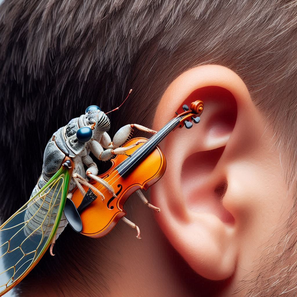 – Depuis longtemps Docteur, j’entend en permanence un bruit de fond, semblable à celui des cigales qui chantent en forêt à la tombée de la nuit et bien que ça ne m’inquiète pas outre mesure, c’est un peu dérangeant et je me dis que c’est peut-être aussi le symptôme d’une maladie. Qui sait, héhé, j’ai peut-être de vrais insectes dans la tête. Vous en pensez quoi?