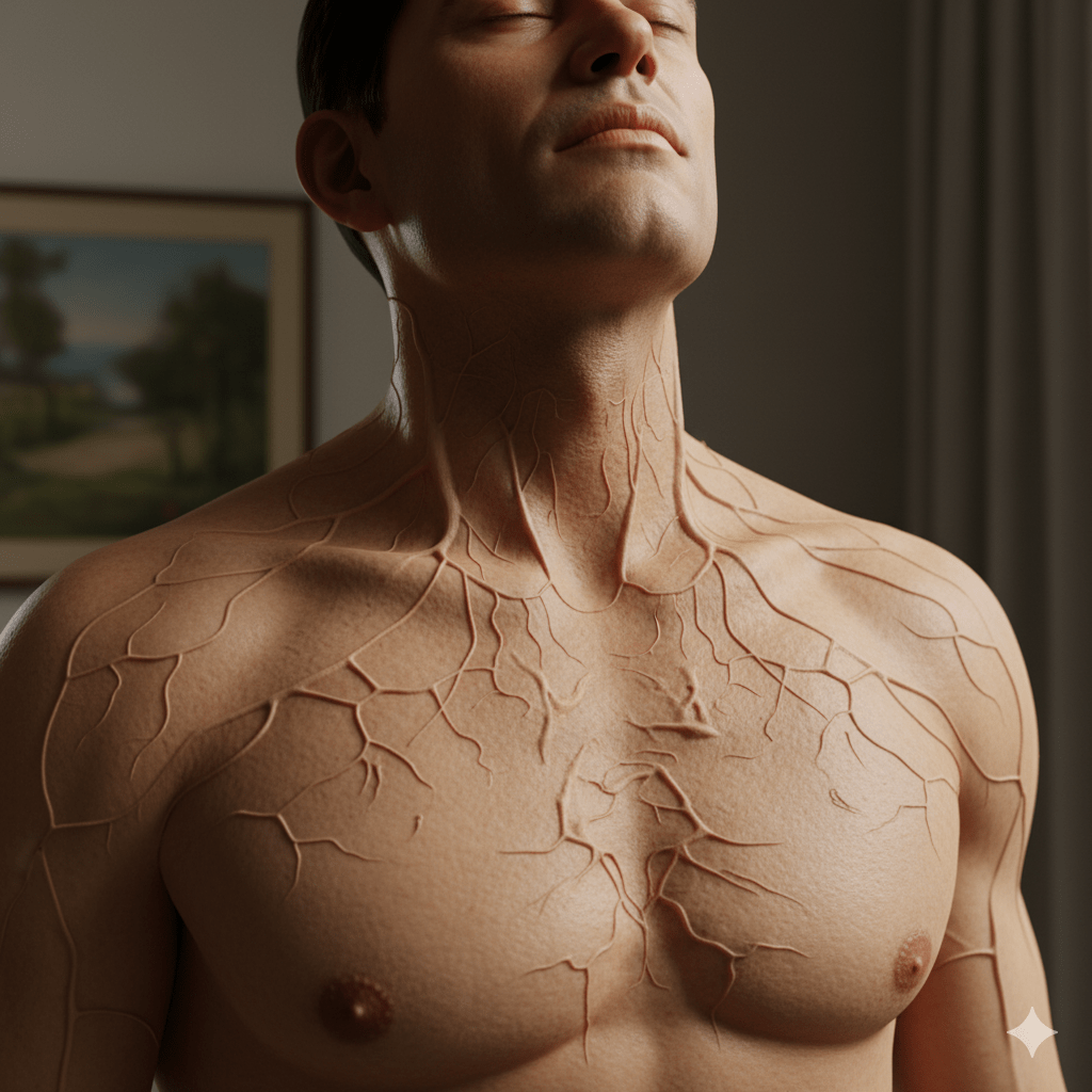 Je me levai et me rendis à la salle de bain pour uriner longuement et libérer cette pression que j’avais au bas-ventre. Ah, que ça fait du bien, pensai-je alignant le jet au milieu de la toilette. Ce pipi du matin est assurément un des plaisirs inavoués les plus répandus depuis la nuit des temps! En me lavant les mains par la suite, je vis mon reflet dans le miroir et constatai que les veines de la partie haute de ma poitrine étaient vraiment devenues saillantes sous la peau. Je m’y attendais un peu. Je les touchai du doigt. C’est douloureux. Mes idées bouillonnaient et les Rolling Stone, inarrêtables, tournaient en boucle encore et encore dans ma tête comme un vers d’oreille. J’eu envie de prendre une douche glacée pour éloigner un peu la douleur et calmer mon esprit. J’avalai deux cachets contre la douleur et entrai sous la douche, l’eau froide au maximum du tolérable. Ça aida en effet. Quand je revins dans la chambre pour me vêtir, la créature n’était plus là. Je m’habillai et descendis à la cuisine. Elle n’y était pas non plus. Par la fenêtre, je l’aperçus. Elle était allongée toute nue sur la chaise longue, sa peau verte, lisse et luisante sous les rayons du soleil. Je sortis la rejoindre. Le soleil me paru aussitôt incroyablement bénéfique. Je me senti investi d’une énergie nouvelle. Était ce déjà ça? Wow.